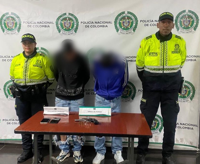 De inmediato, las autoridades activaron el Plan Candado y lograron ubicar a los sospechosos sobre la Avenida Boyacá con Carrera 25, donde intentaron huir y se presentó un intercambio de disparos. Ambos fueron capturados en flagrancia y se recuperó la camioneta, dos teléfonos celulares y un arma de fuego.