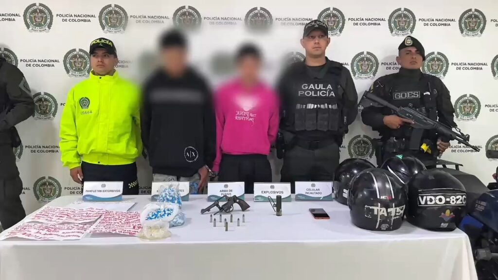 Uno de los resultados más relevantes fue el golpe a la estructura criminal “Los Satanás”, señalada de extorsionar a comerciantes y transportadores en la ciudad. Durante allanamientos en la comuna León XIII fueron capturados alias “Alexander” y “Rambú CV”, y se incautaron armas, un artefacto explosivo, motocicletas y panfletos intimidatorios.