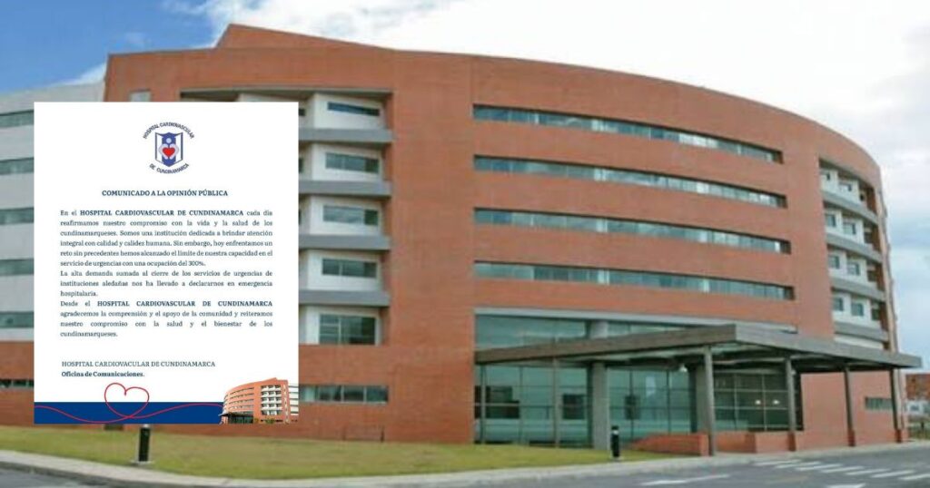El Hospital Cardiovascular de Cundinamarca informó este viernes la declaratoria de emergencia hospitalaria, luego de que el área de urgencias alcanzara un nivel de ocupación del 300%, cifra que sobrepasa de manera crítica su capacidad de atención.