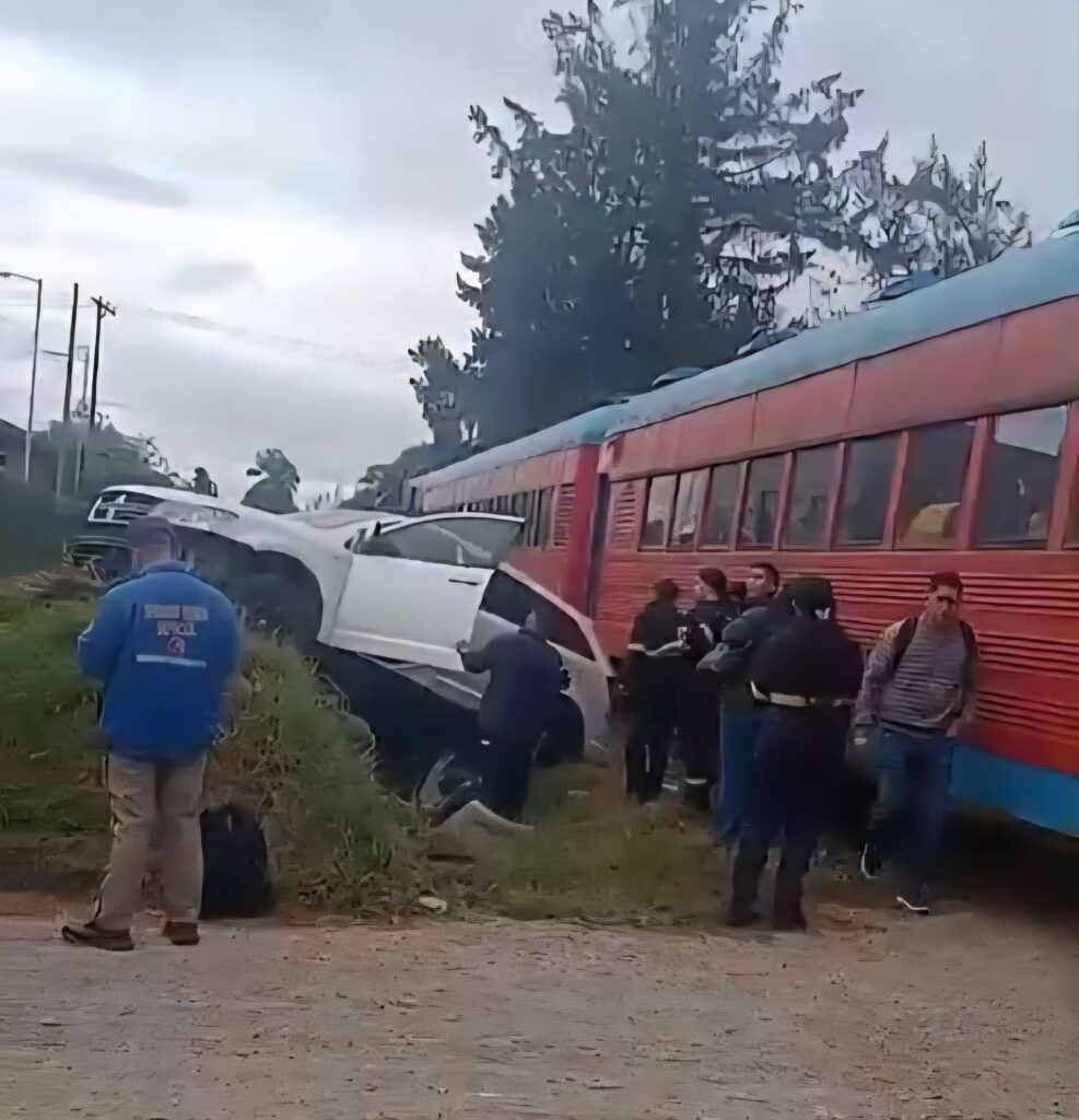 De acuerdo con las primeras versiones, el conductor del vehículo habría intentado rebasar el cruce justo cuando el tren se aproximaba, lo que provocó el fuerte choque. El automotor resultó con graves daños materiales, y uno de los ocupantes sufrió lesiones que fueron atendidas en el lugar por los organismos de socorro.