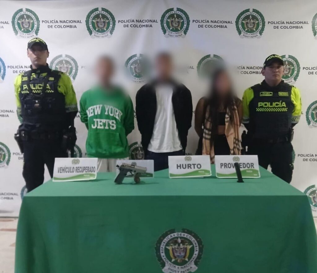 Gracias a la rápida denuncia de la víctima y a la activación del plan candado, uniformados lograron interceptar el automóvil en movimiento en la carrera 78 #8B. Durante el procedimiento, se incautó un arma de fuego y se recuperó el vehículo, que fue devuelto a su propietario.